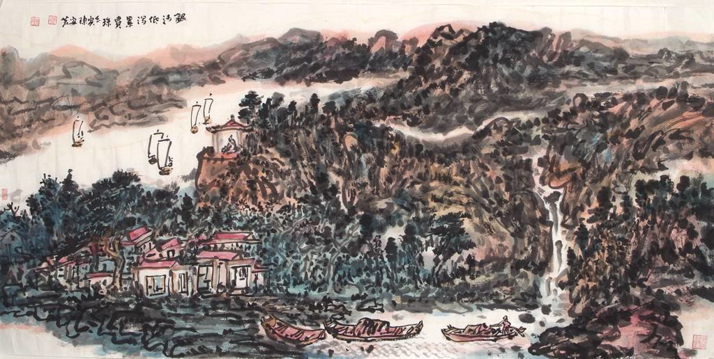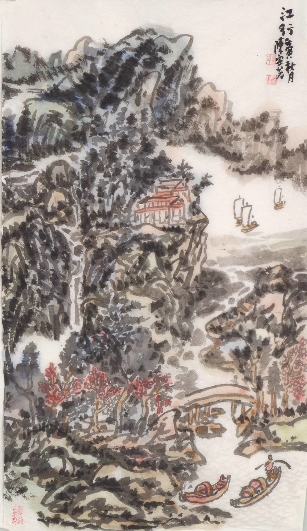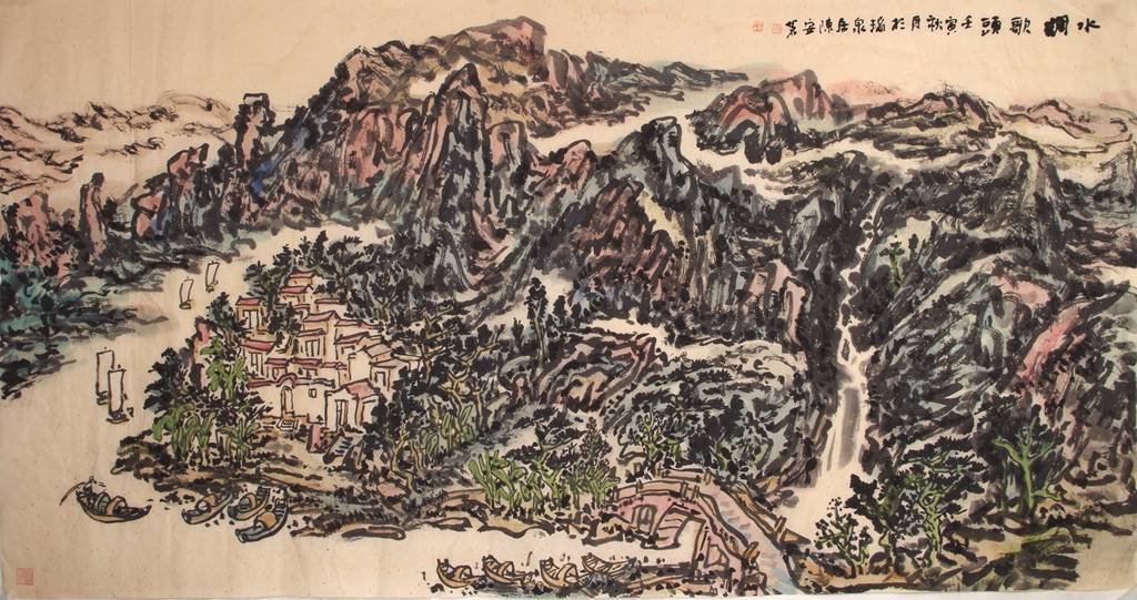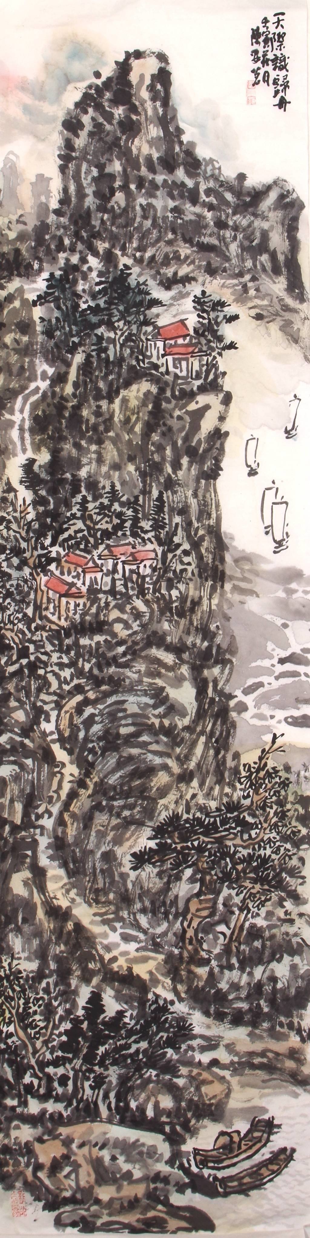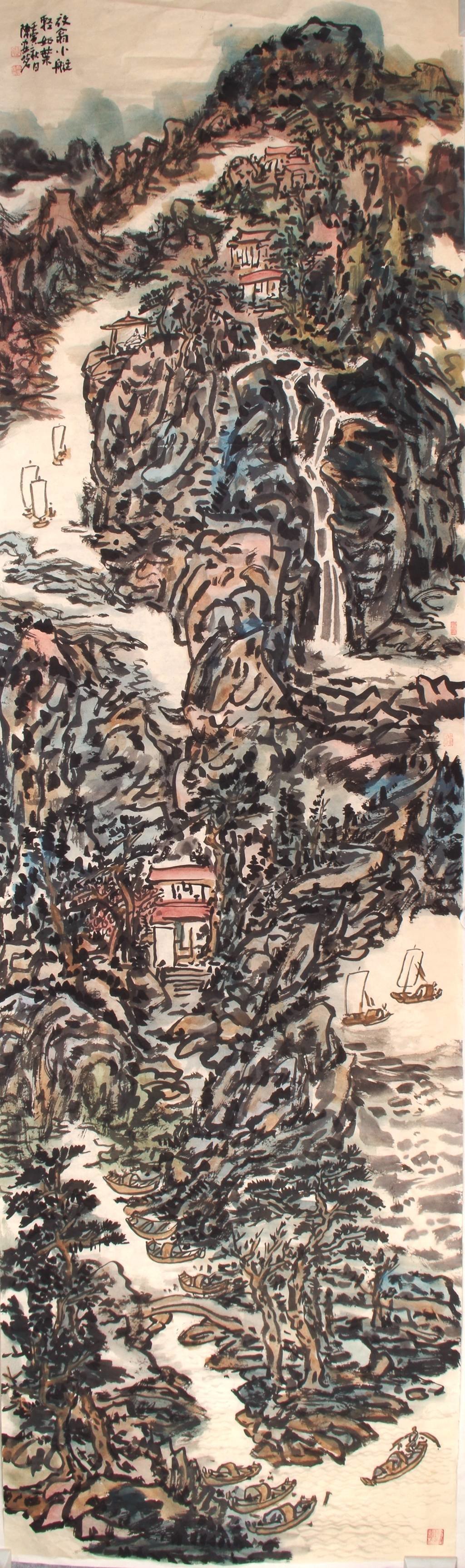 山水画不能一遍即了,必须一遍二遍地加,才能厚,才能使人有完工的感觉。何处应加,何处不应加,心中要有个数。大致实处重处要加,甚至有的地方加得结实,一遍二遍地加,不让它透一点风。有些地方少加,或者干脆不加,即所谓“放得下”。