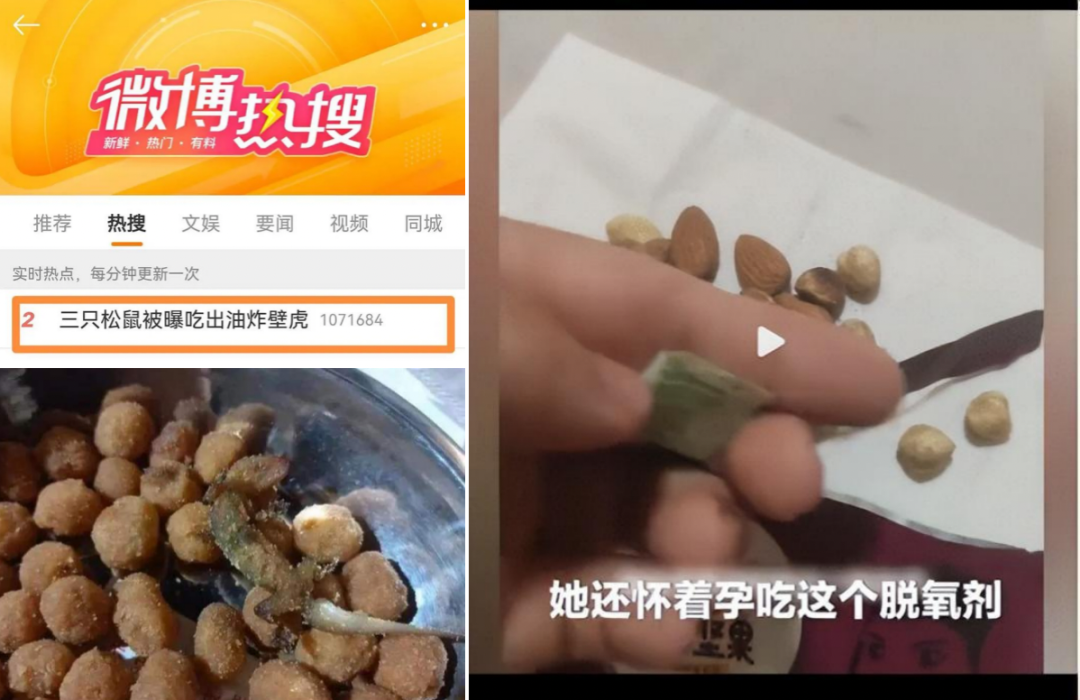 年中,《市场监管总局关于20批次食品抽检不合格情况的通告》显示,三只松鼠开口松子相关指标不符合食品安全国家标准规定。年末,消费者投诉三只松鼠坚果发霉变质;甚至还有消费者表示,收到的零食礼包中有一只活仓鼠及排泄物。