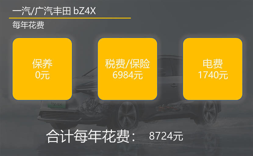 经过我们的计算,bZ4X的每年花费在8724元,平均每月是727元,对于一台这个价位的车型来说不算贵,而且大部分花销在保险上,如果上一年没有出险,那么保费会逐年下调,用车成本就会进一步降低。