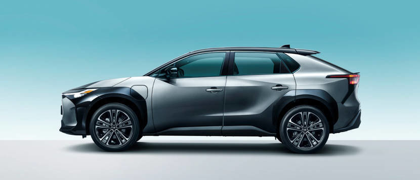 造型上来说,bZ4X脱离了以往丰田的设计理念,转而变得科技。前脸是封闭式的中网,大灯扁平化,内部是LED光源,下包围进气格栅尺寸不大,这是纯电车的特性。侧面翼子板和车身大体的颜色不同,做成了双色车身。