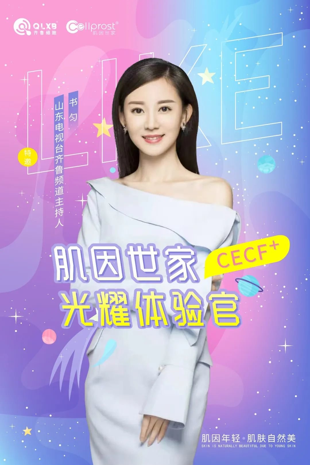 书匀,山东电视台齐鲁频道主持人,从业19年,主持20余档电视节目、大型晚会活动,荣获多项专业大奖,并致力于投身公益事业。她对国货的爱和对齐鲁细胞产品的信赖,与“肌因世家”倡导的品牌宗旨极为契合,促成了本次合作。