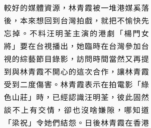 汪明荃还在其他宣传《杨门女将》的节目里再次提到这件事,让林青霞受到二次伤害,还被一堆港媒奚落。