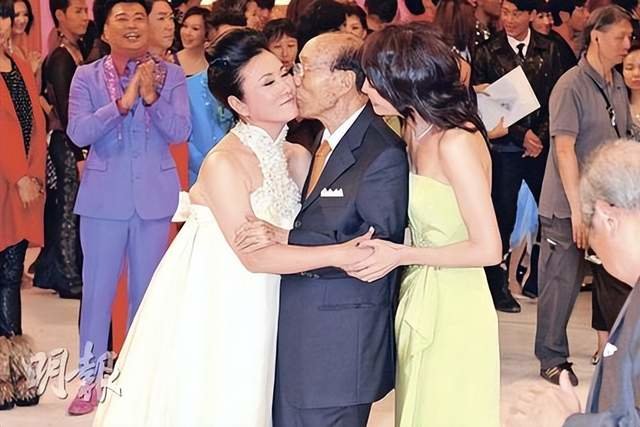 汪明荃拿到奖后,亲了亲六叔邵逸夫的面颊,沈殿霞不管,她直接和六叔嘴对嘴亲亲。