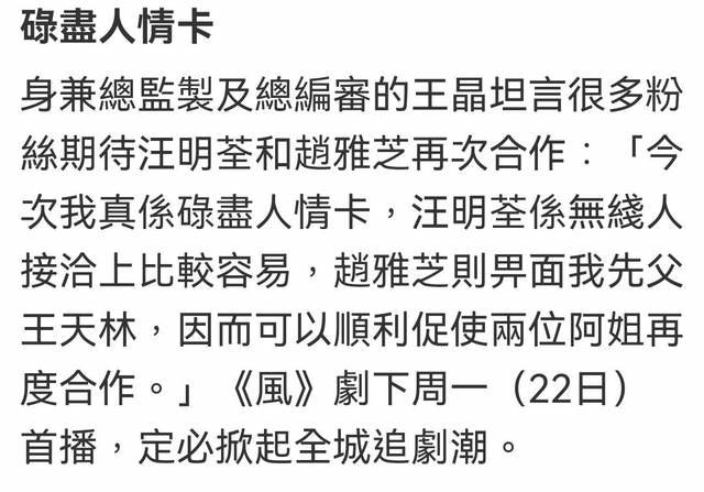 影射汪明荃老。