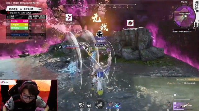 《永劫无间》NBPL第二赛季复活赛DAY1 单排第六局的赛况也是相当激烈,JTeam丶Xin在决赛圈时的状态很好,绝境逢生,怒斩两人拿下天选。在GD丶Dongqing与VENTUS丶Reccy打得不可开交的时候,Xin一个冰寒飞影同时冻住了两个人,时机卡得刚刚好。