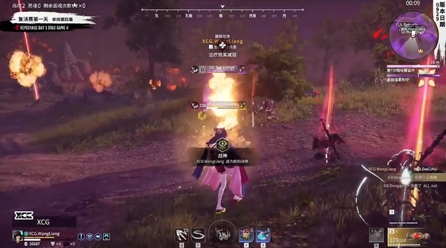 在第二赛季复活赛DAY1单排第四局比赛中,XCG丶WangLiang给我们留下了深刻印象。在决赛圈激战时,最后场上只剩六个人,暗域侵蚀还剩50秒,这一阶段的战局对WangLiang而言并不是特别有利,他需要考虑到滞空时间。