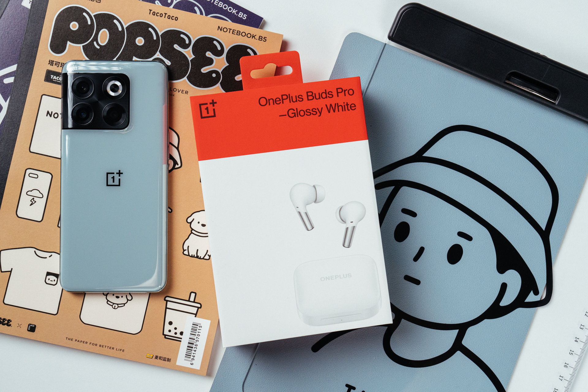 目前TWS耳机产品可以分为两种:像AirPods的和不像AirPods的,OnePlus Buds Pro属手后者。具体的什么设计之类的其实不必多说,好不好看因人而异。OnePlus Buds Pro一共有三种配色选择,我入手的是白色。充电盒采用了棱角分明的扁平设计,有点像女生的粉底盒。扁平的盒子收纳时占用空间很小,不管放包,还是装在裤兜口袋里都会方便很多。