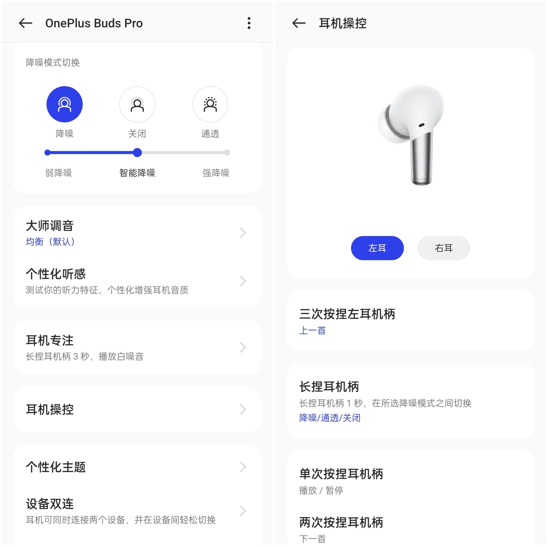 通透模式:OnePlus Buds Pro做到了和AirPods Pro一样的通透模式听感,在这个模式下变现非常突出,从降噪模式切换过来的时候你会感受到明显的声音放大感,环境的声音变得清晰,几乎是和不佩戴耳机一样的感觉。
