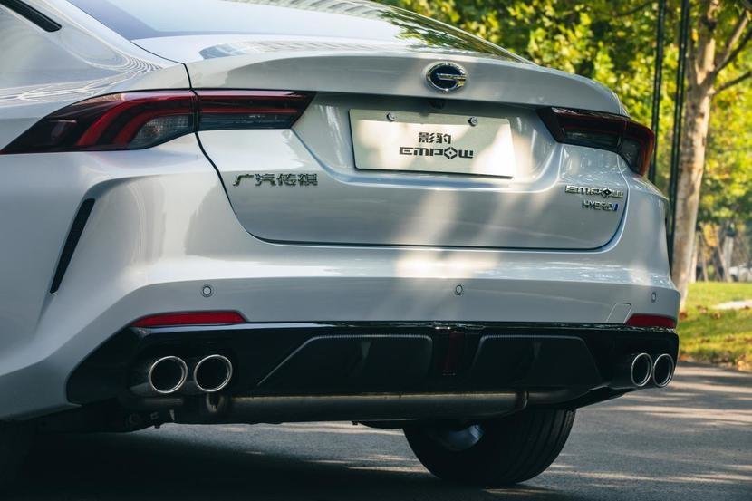 众所周知,混动车型的要义是节能,这是不是与影豹强调的运动相违背呢?先来看看影豹混动版的造型,除了前后分别更换了融入了蓝色底的传祺车标和尾部HYBRID字样,新车与普通燃油版1.5T的设计基本一致,造型上整体延续了纯汽油版的运动风格。