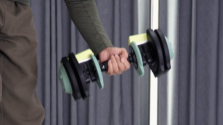 哑铃的做工和用料都很讲究,没有异味。单只最小可以调到1Kg,最大可以调到18Kg。除了一些资深的健身人士,这个重量对于普通人来说已经足够了。尤其是一些小肌群,都能够达到很好的刺激。