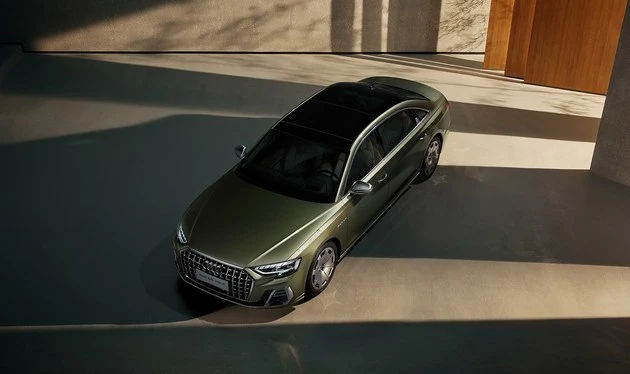 设计方面,全新奥迪A8L Horch创始人版将123年的DNA,出色的家族化筹划,标准完美融合,表达着奥迪顶级车型的气势。 在配色方面,全新奥迪A8L Horch创始人版的外观配色出色,增加了雨云灰,橡木绿等专享时尚化配色,并增加了传奇黑配花剑银,花剑银配传奇黑,苍穹蓝配极光蓝等3种双色车身配色设计,赋予用户高端,尊贵的专属挑选。