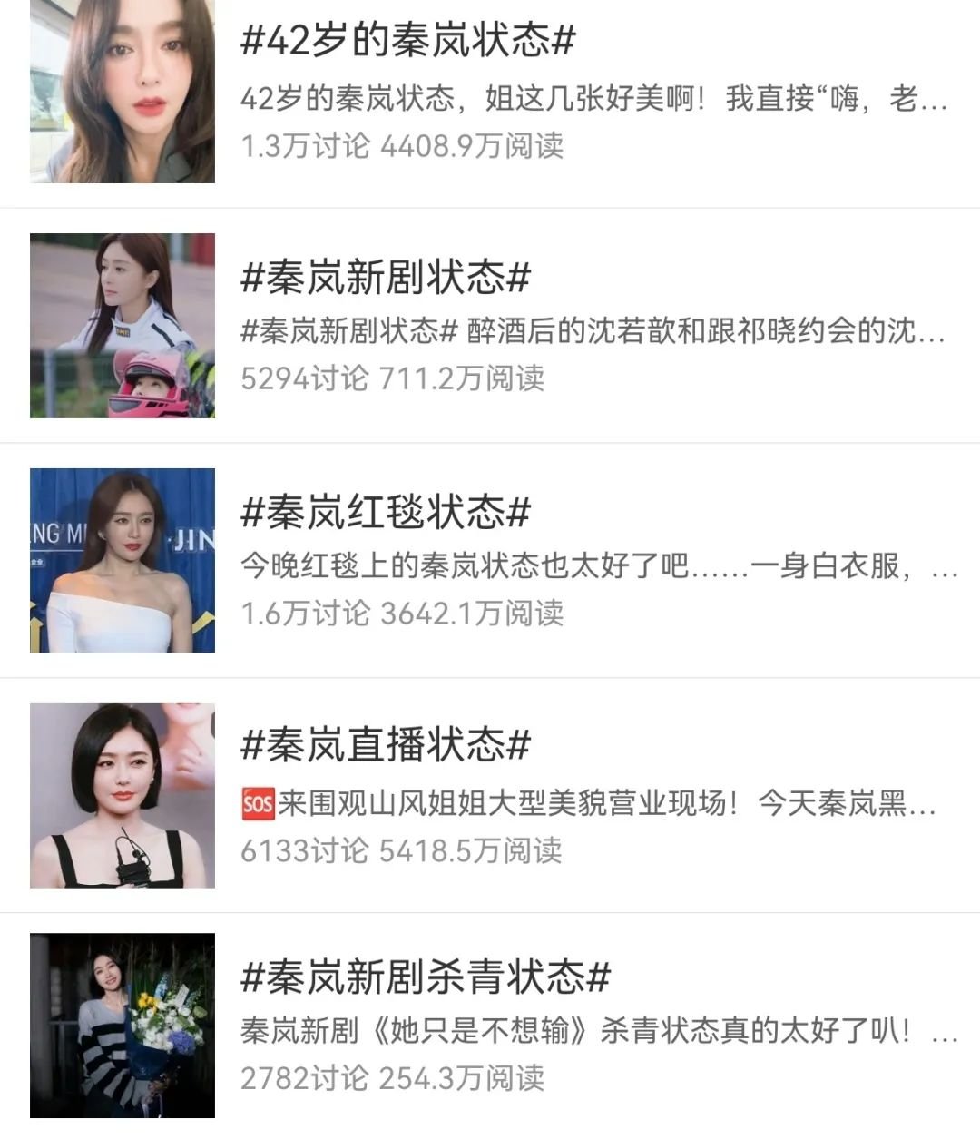 其实更早之前,秦岚也因为状态引起过讨论,包括42岁的状态、在新剧里的状态、走红毯时的状态、直播时的状态、新剧杀青的状态等等。在绝大部分的讨论中,都是夸她保养得好的,换句话说就是看起来还年轻。