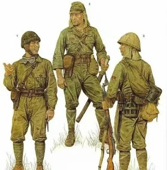 日本陆军二战期间的九八式军服也包括略帽,就是我们常在影视剧中看到的形态,这种军帽属于简便式作战帽制,可以戴在钢盔里,后边可以加挂三片垂布,影视剧中这类形象可以说是常见的。上面提到过日军首次使用帽垂是在我国台湾,目的是防晒,这并非日军发明创造的。
