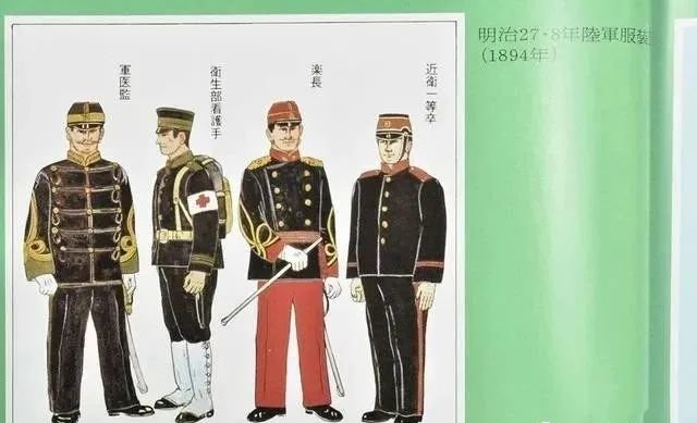 日本新式陆军的建立还要追溯至明治天皇,在一系列军事改革运动中,他也尤其重视军服的革新。在明治维新初期,日本军服还是相当混乱的,当时只有支持明治天皇倒幕运动的萨摩军是配备了统一的深蓝色军服。在明治天皇夺权成功后,便开始了新式陆军的改造,当时明治天皇首先聘请的教官是美国南北战争中的退役军官,所以第一批日军军服主要是仿制了美制北方军军服。其中军官军服多为深蓝立领单排铜纽扣,军裤为深蓝色直筒,军帽为红色帽顶蓝色帽身的“法式桶帽”,日军称“正帽”,军官正帽都配有羽毛帽缨。