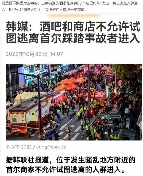 网友为梨泰院踩踏事故不开门营救的夜店老板喊冤:“开门后果更可怕”——引言。