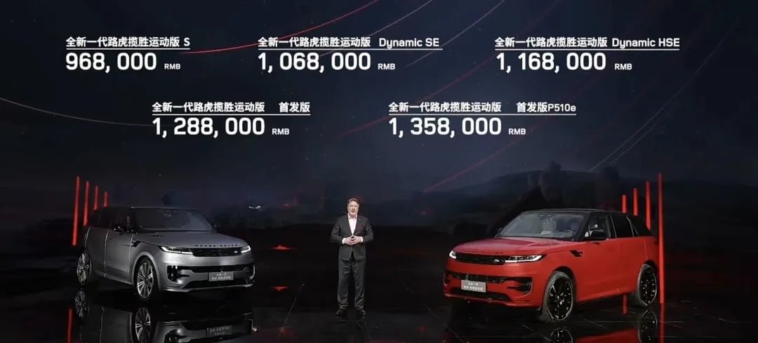 10月28日,全新一代路虎揽胜运动版正式上市,新车共推出5款车型配置,其中4款汽油版车型的售价为96.8-128.8万元,插电混动版本的首发版P510e的售价为135.8万元。