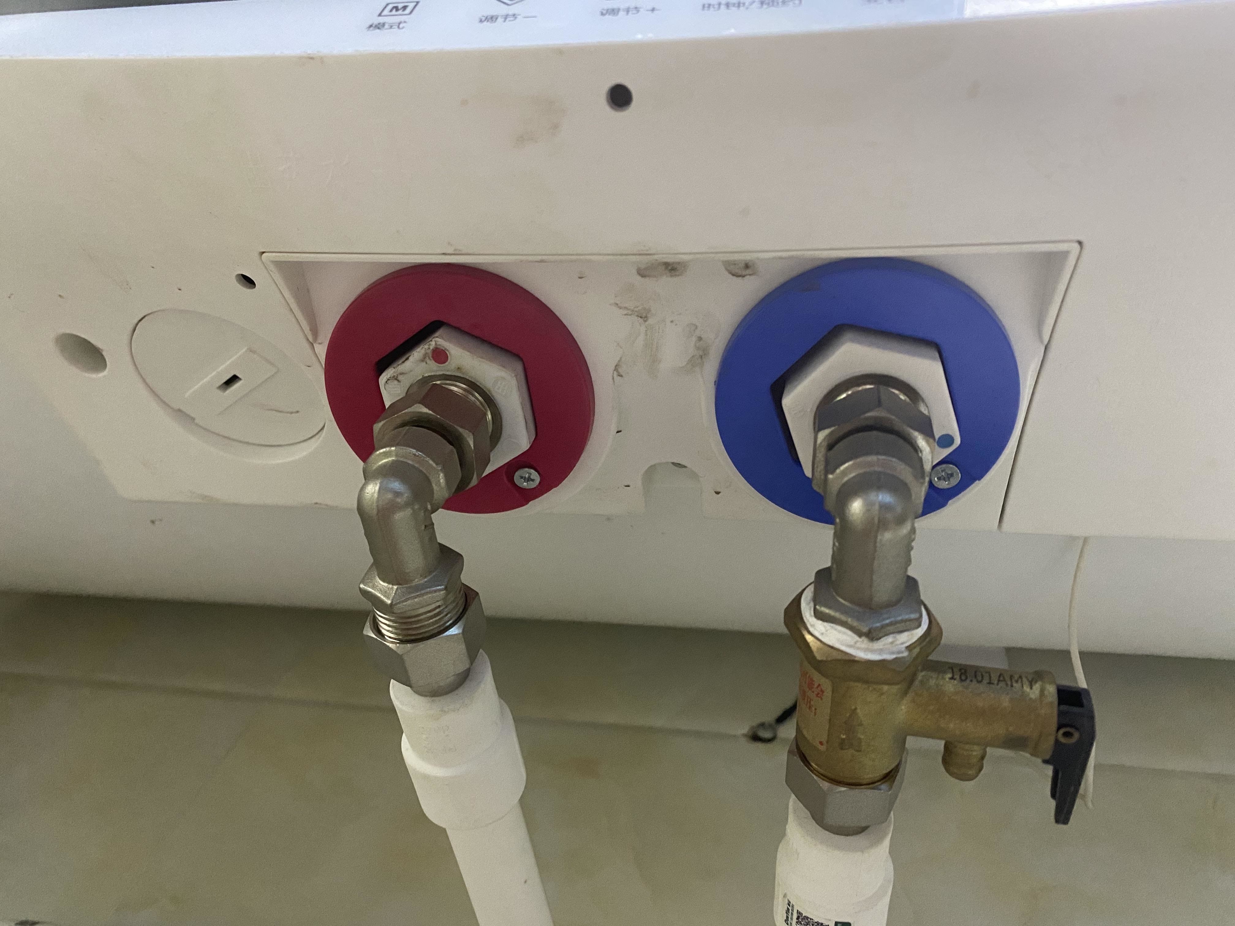 3.预防压力过大,电热水器在进水口处安装了一个泄压阀。泄压阀上都会标注一个数值,当电热水器里面的压力超过这个数值时,就能把泄压阀的阀门自动顶开,进行排水泄压,防止内胆压力过高。