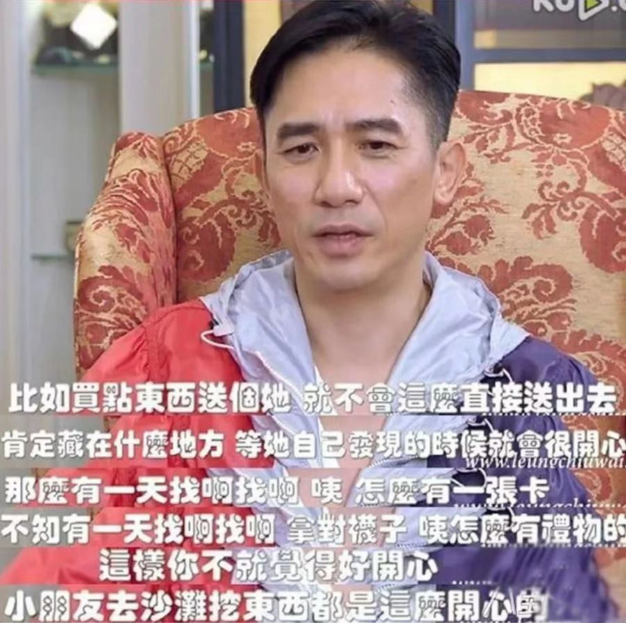 他平时会给刘嘉玲买礼物,但是他从来不会直接送,而是藏起来,想让她自己发现时的那种惊喜感,就像小孩子去沙滩挖到宝。