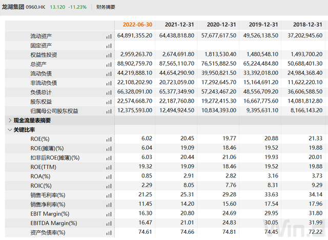 不过,龙湖集团的总负债也在上升。2018年-2021年,其总负债从3660.66亿元增至6537.73亿元;资产负债率从72.22%增至74.66%。今年上半年,总负债为6632.81亿元,负债率为74.61%。