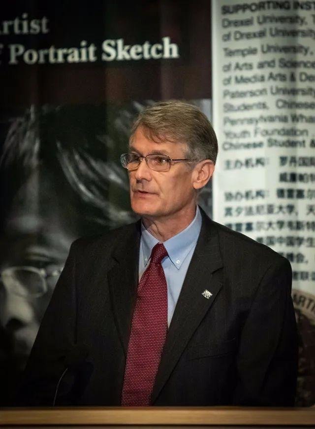 天普大学法学院副院长桑国亚(JohnSmagula)教授代表美国大学发言。作为一个纯粹的美国人,他却讲着一口京腔普通话。他很感动冷军大师能够同时掌握东方和西方的绘画技巧,并且具有多元化的思维“diversity”。桑教授在发言的结尾,幽默地说美国俗语“美丽的生活未必完美”却被冷军大师挑战了,因为大师的绘画作品中美丽和完美兼具。