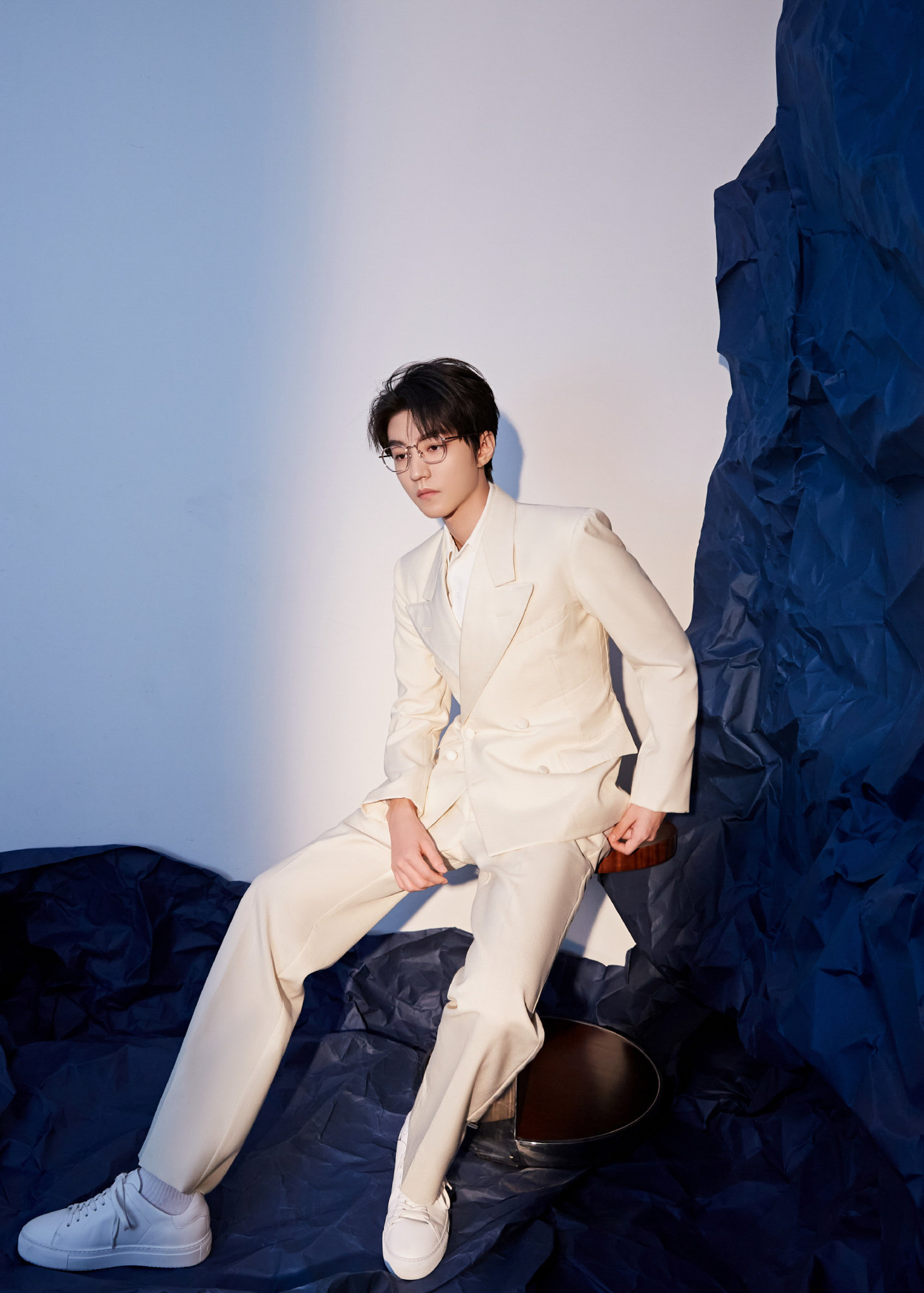 王俊凯发布白色西装造型写真 银框眼镜气质矜贵