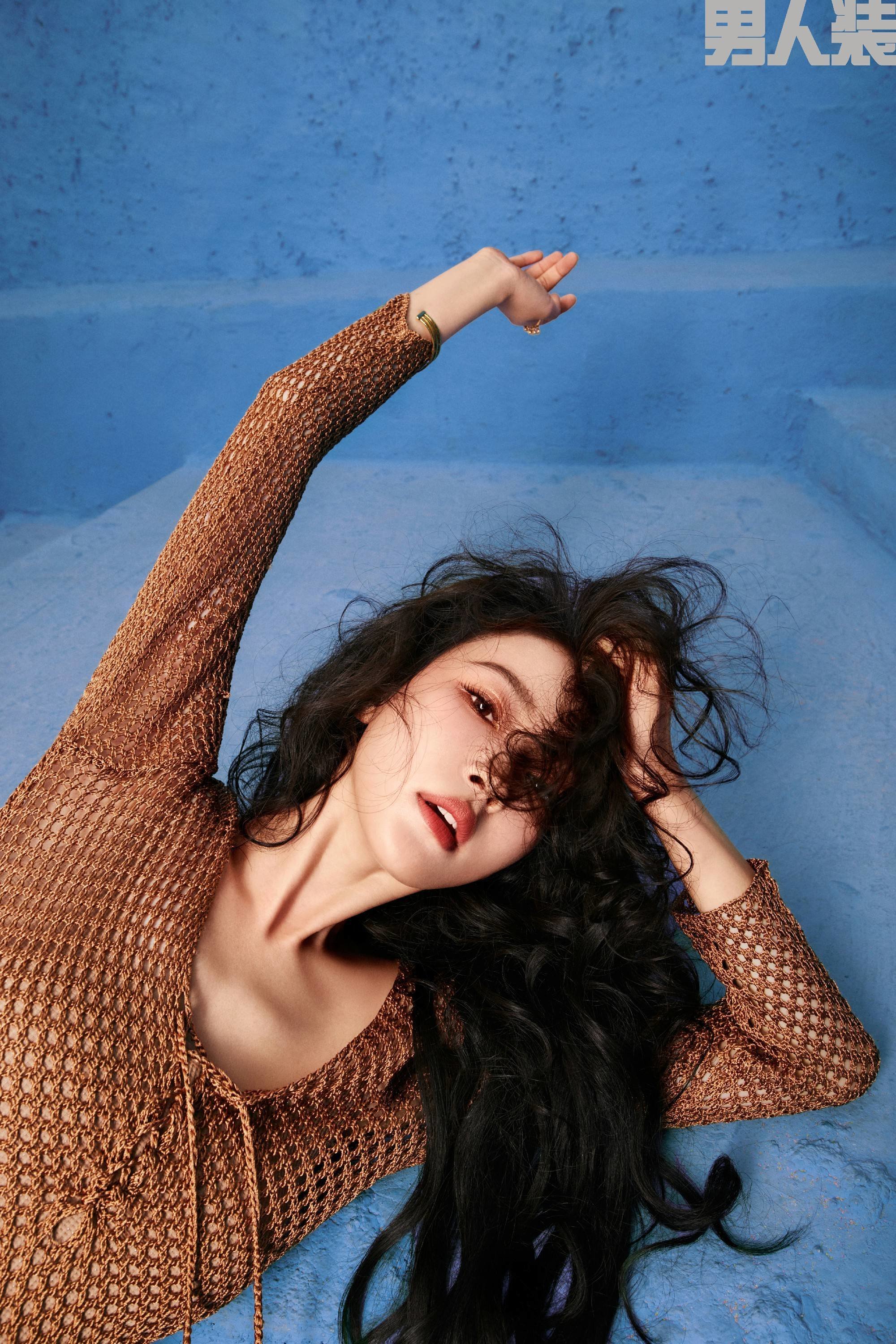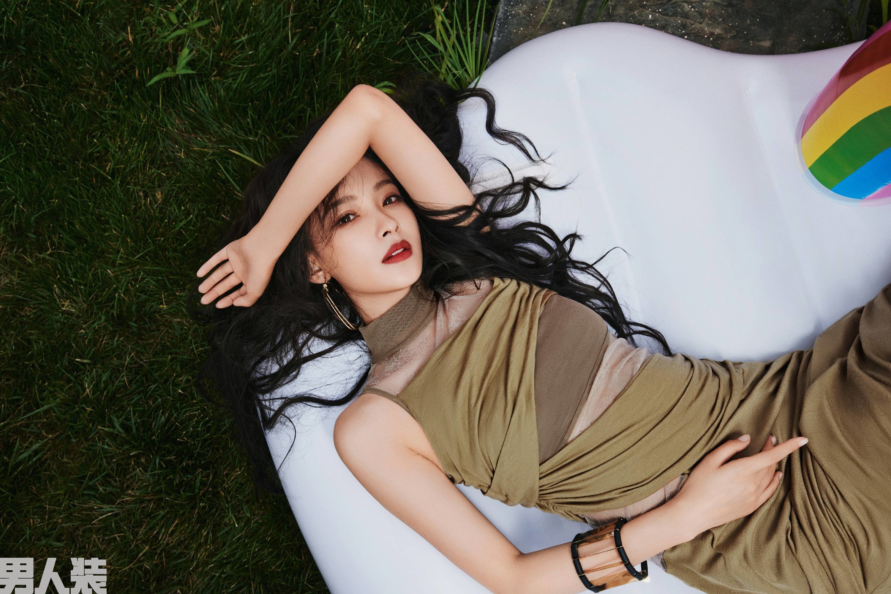 男人装很会把握女性魅力,将每个女生的长处展示在镜头之下,这组褶皱束身长裙很接近大自然的色系,所以选择在空旷的草地上拍摄,孙怡的身材很好地凸显优越身姿的同时自在感十足,仰拍镜头也是毫无压力,左手自然垂放在额头之上,眼神中是自信又带着一些深情,很有故事感。