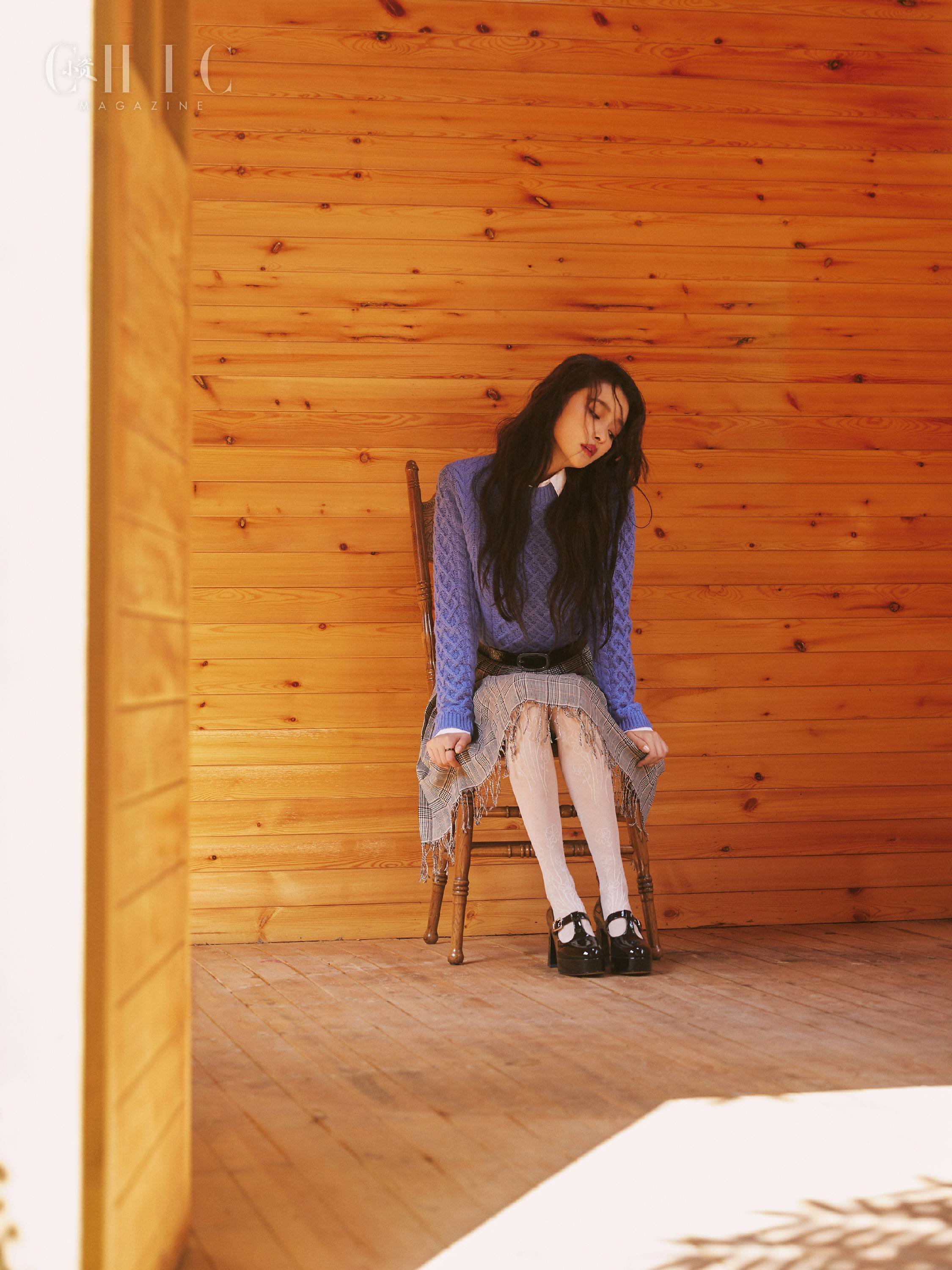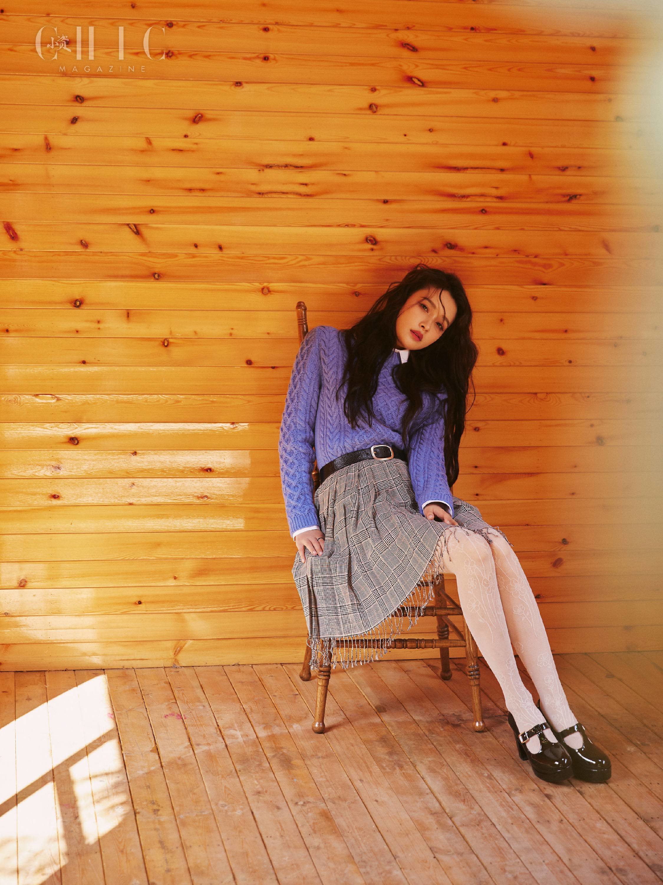 这一套也是小资的时尚造型,蓝色毛衣搭配格子半身裙,法式优雅同时又有点慵懒,很自在的美,黑长发更加有女性魅力,孙怡的拍照姿势也是很有自己的个人风格,不会被服装造型束缚住,反而是用自己的感觉来搭配外在穿搭,妥妥的大美女。