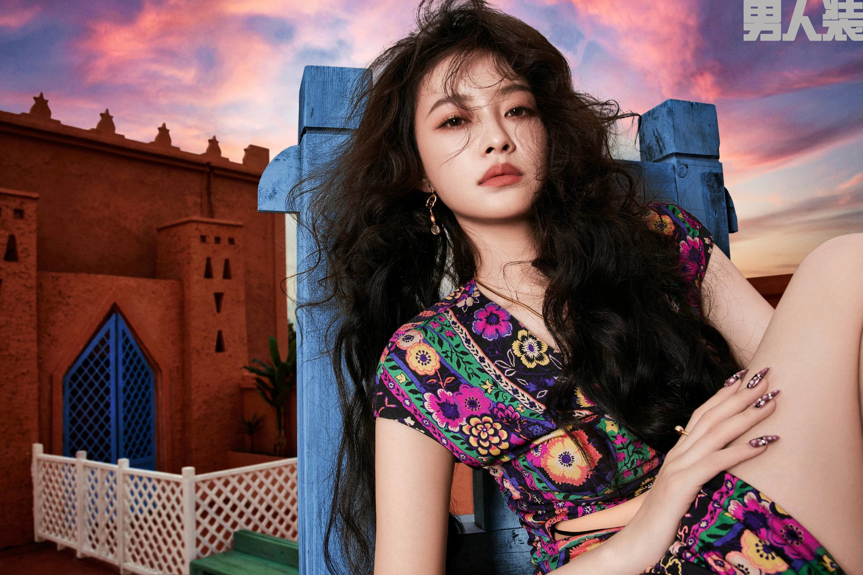这一套波西米亚风格的造型与背景真的很合拍,孙怡烫卷的发丝都在体现着性感魅惑,耳坠也是很能彰显女性魅力,整体妆容精致耐看,随性的姿势气场大开,魅惑中尽显高级感。