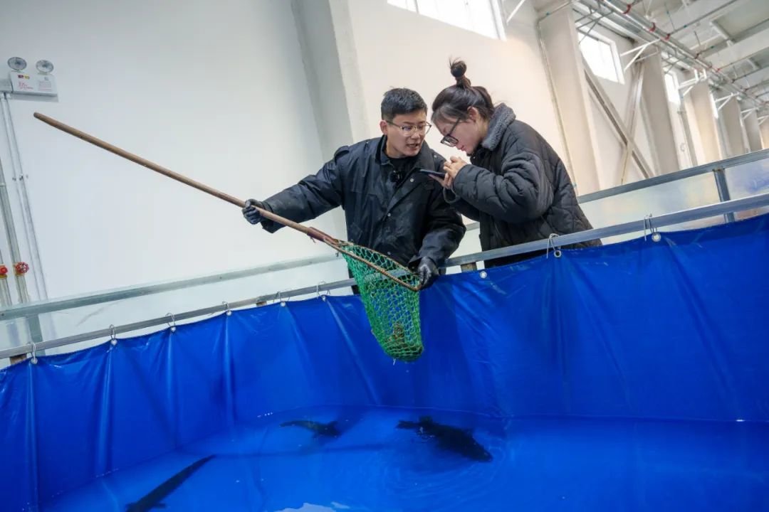 凌晨3点,蔡家洼村的一间厂房亮着灯。王洪烨将手指伸入帆布水池底部,触到一鱼体,“问题不大,鱼鳃还在动着”。