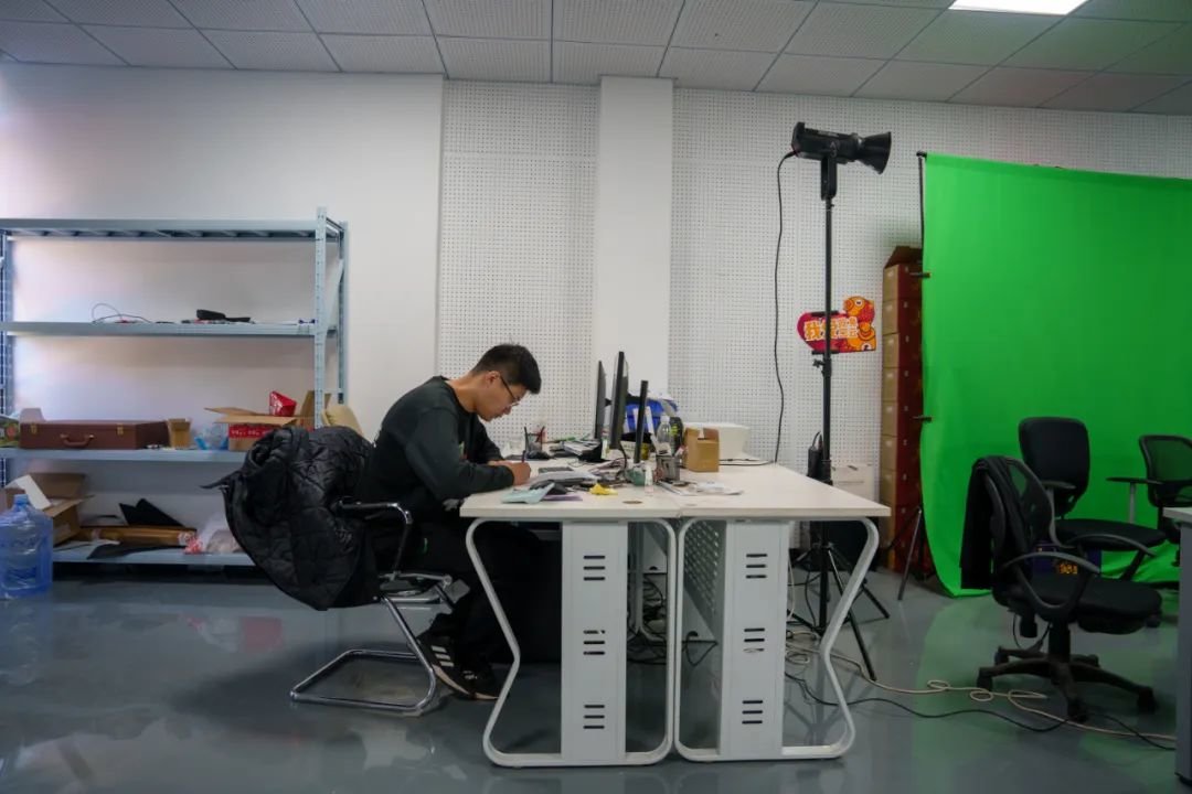 10月19日,结束直播后的王洪烨在工位前忙碌。