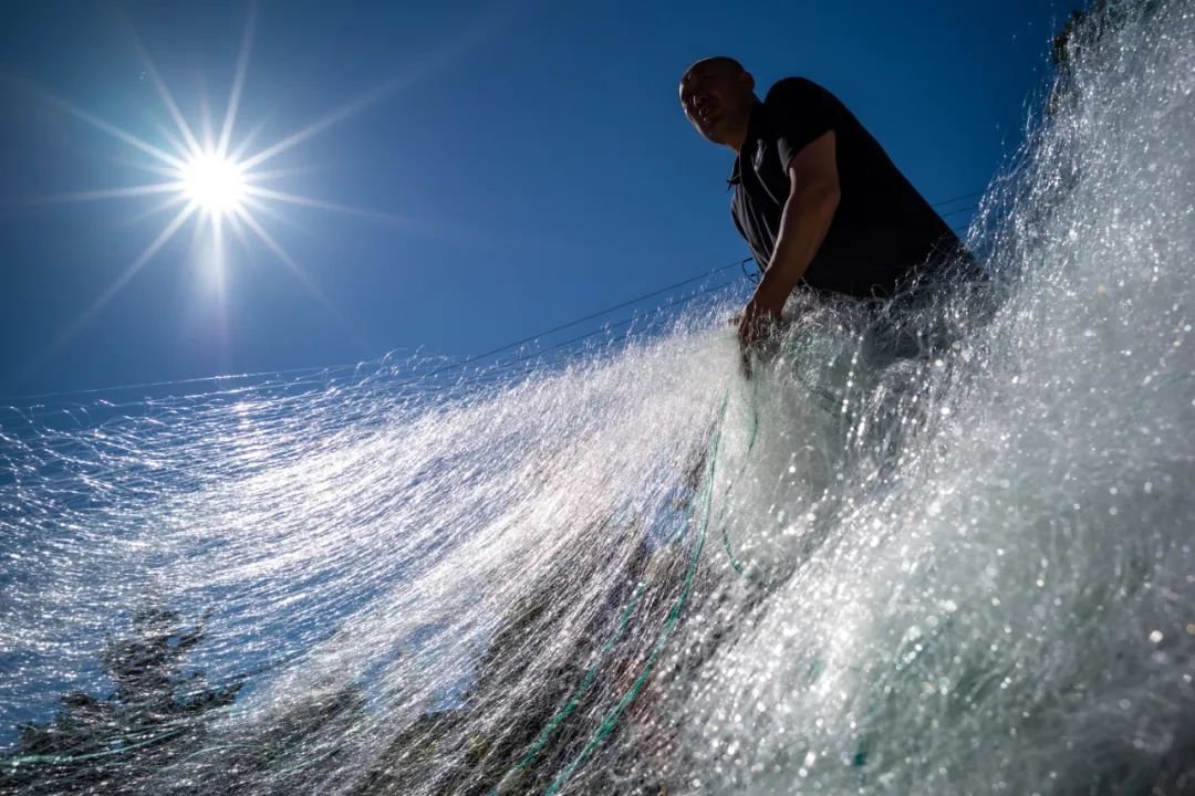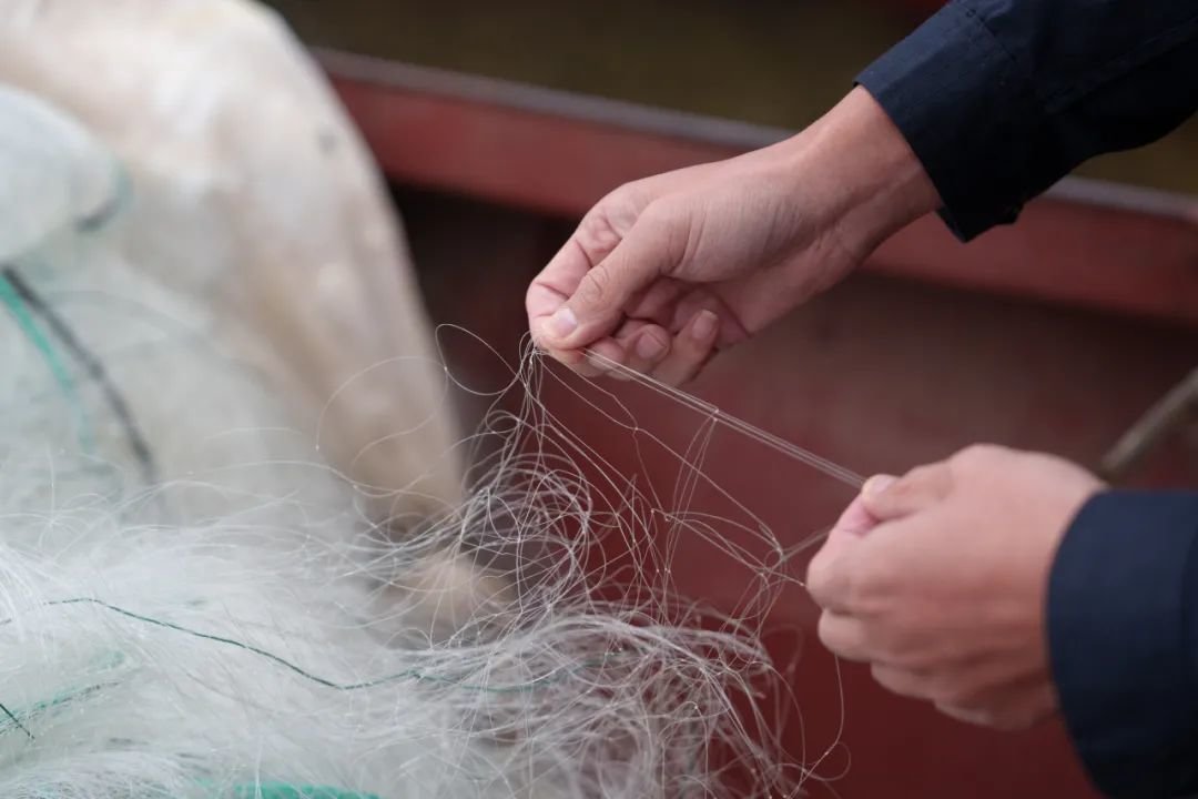 作为家中的第三代渔民,郭小超感觉自己很幸运。他记得长辈们有用旧网的习惯,一张网,要用两三年才舍得换。虽然现在网的质量变得更好了,但他每年就要换一次新网。