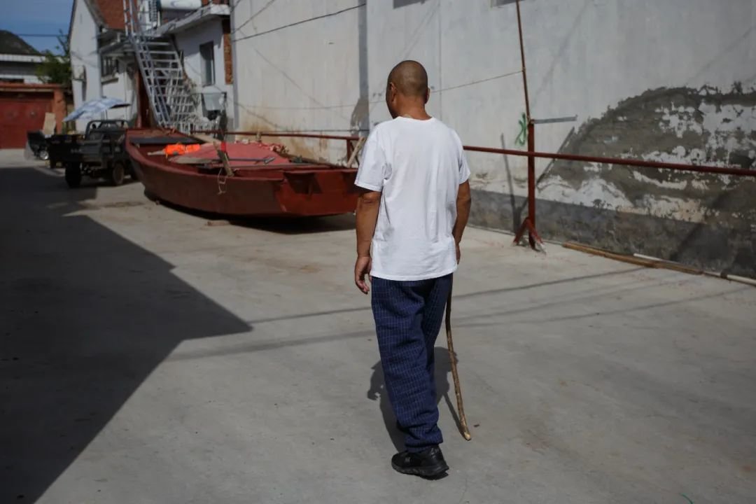 9月24日下午,郭小超的渔船即将被拉去库区,他的父亲默默走回家。