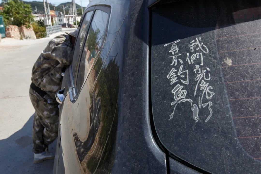 9月24日,郭小超的汽车后面贴着“再不钓鱼,我们就老了”。