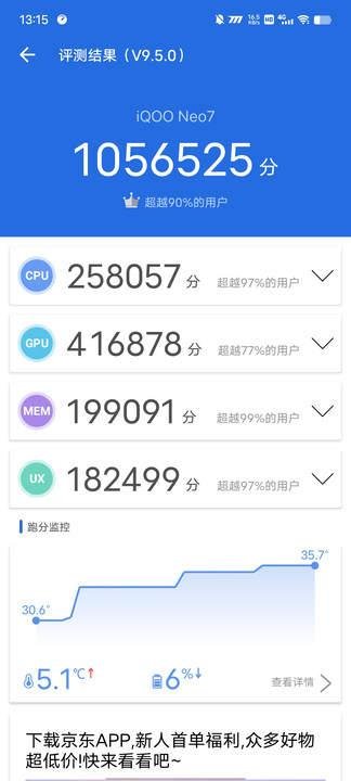 在这次体验之后,我感受到了iQOO Neo7这款手机在性能方面的强硬,虽然这款机型的定位是中端,但是它所搭载的性能配置跟不少旗舰机相比丝毫不逊色,拥有着强大性能实力的它想必也会圈住不少粉。与此同时,在续航、充电、屏幕和散热方面皆有着出色表现的它,无疑给自己增加了不少buff,进一步扩大了自身在市场上的竞争力。总的来说,iQOO Neo7是一款在同类型产品当中性能优势很大的机型,不知道屏幕前的你是否也这样觉得呢?