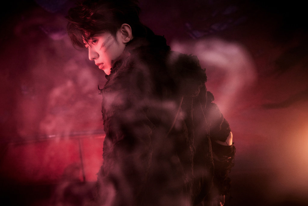 蔡徐坤《沸腾校园》舞台照 红色灯光战损妆好帅