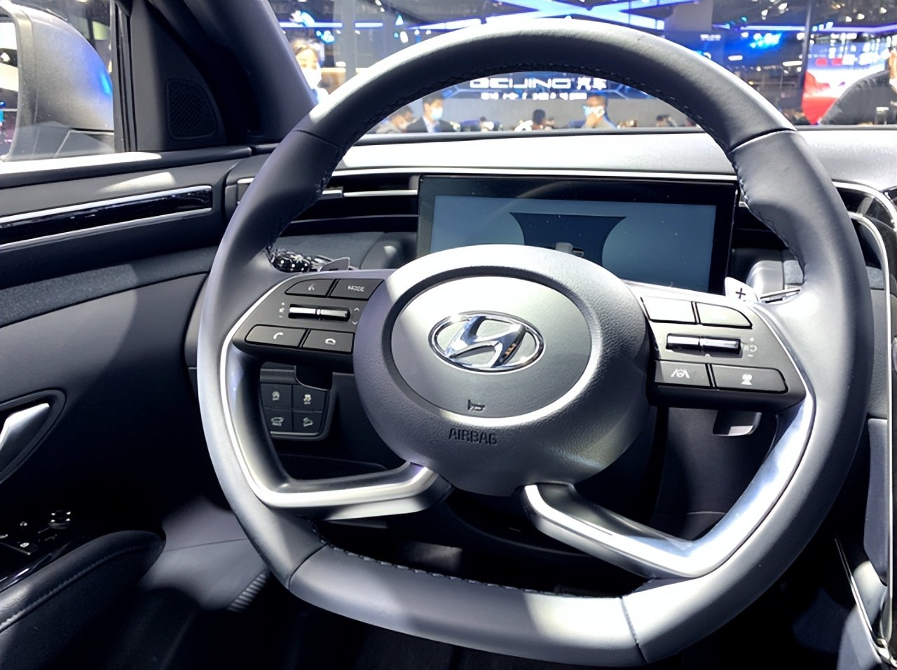 索纳塔采用D型方向盘,也是现在比较流行的内饰设计,方向盘用真皮材质包裹,内侧用浅色缝线装饰,更具运动感。不过如果不看中控屏幕的话,其实可以发现索纳塔的内饰用料不算很高档,很大面积都是都是直接用塑料覆盖的,内饰塑料感稍微有些重。