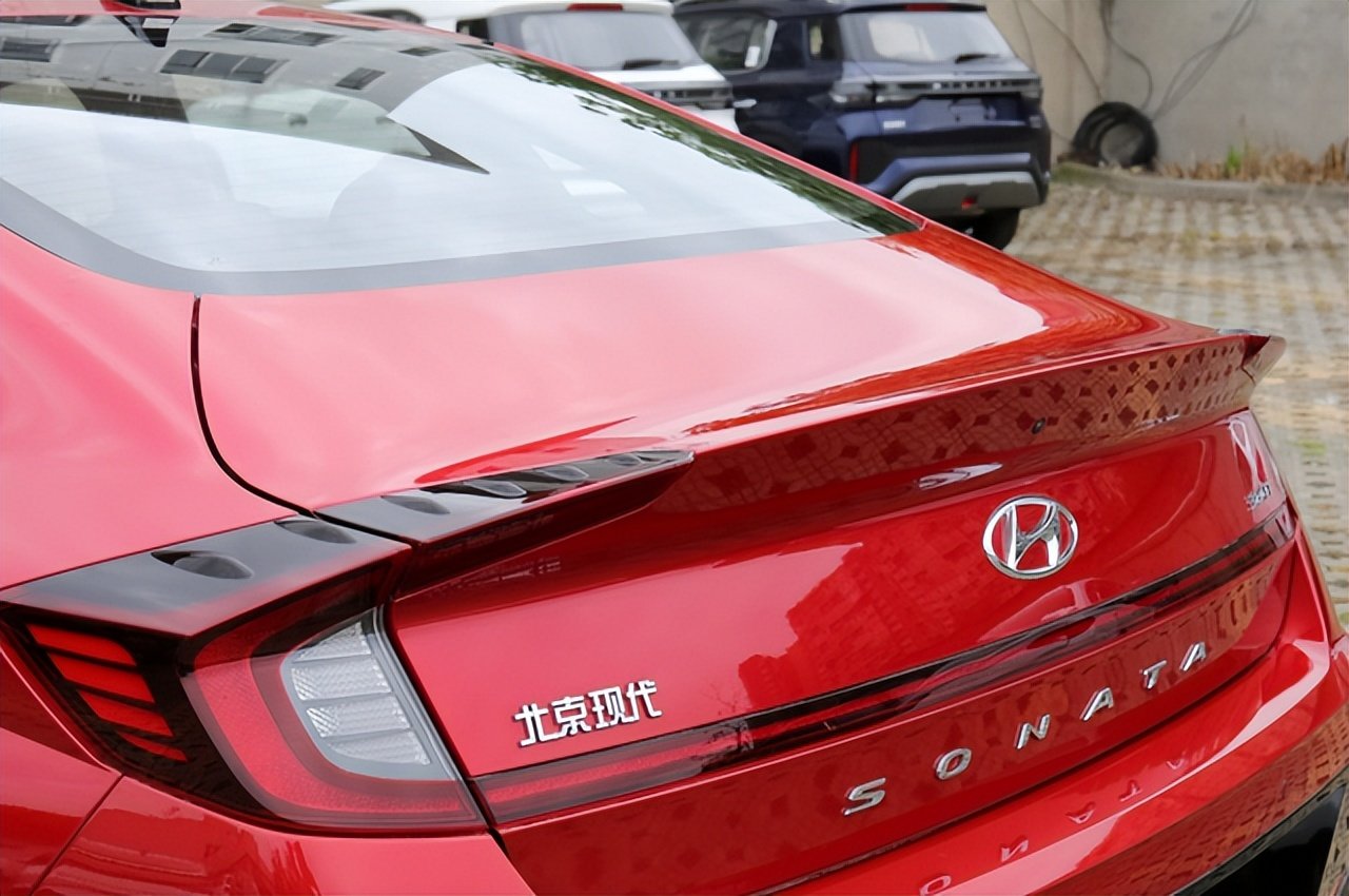 索纳塔的尾部设计也很有特点,后备箱上边有一个小鸭尾设计,而且这个鸭尾一直延伸到两侧尾灯部分,贯穿了两侧尾部,后背中间还有一条红黑相间的横直条设计,尾灯、鸭尾和直条设计一起形成一个类似于椭圆形状的尾部设计,再加上底部用黑色钢琴漆装饰,再加上双边共两出的排气,而且这两个排气也不是样子货,增加运功氛围,这样的设计不能不说是很有特色的。