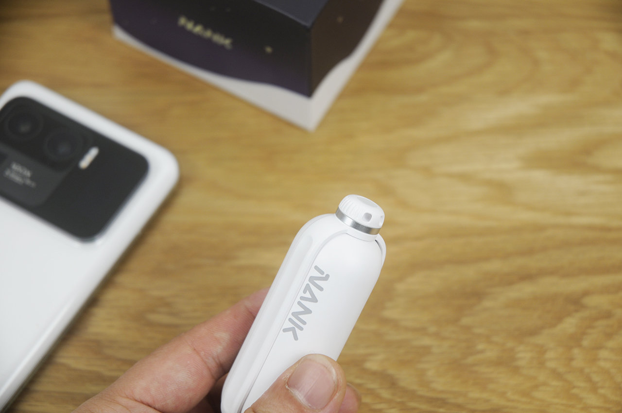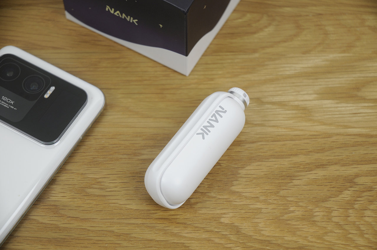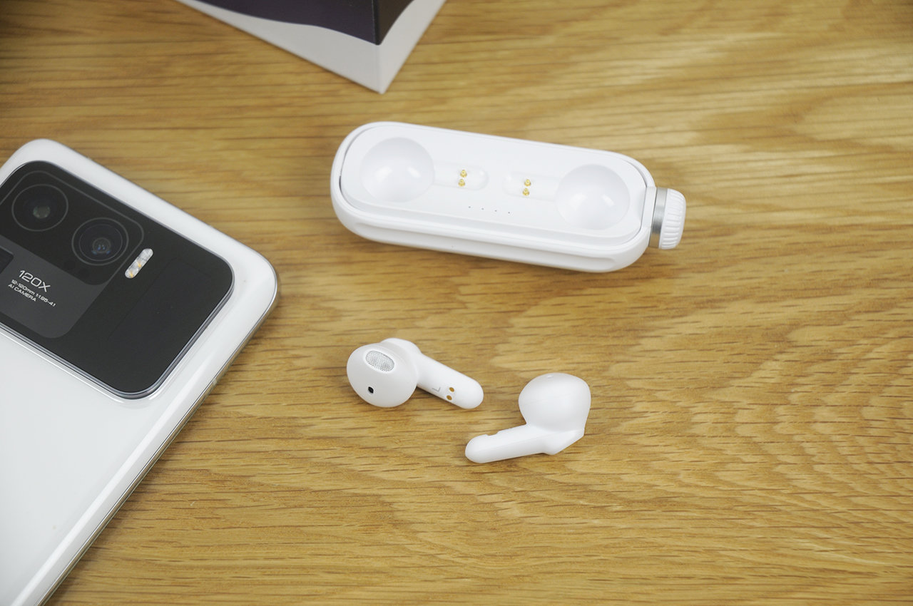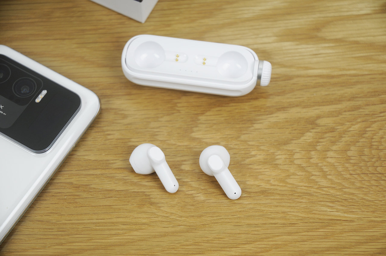 收纳仓的外形似乎像个大号胶囊,与传统TWS耳机的收纳仓想比也显得更加小巧,随机除了USB Type-C充电线还附带一根白色挂绳,可以从顶部穿起挂在背包上,这样的设计在我看来已经跳出了传统的设计思路,显得新奇又创新十足。