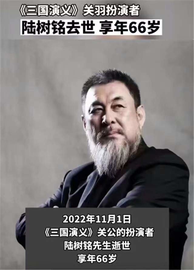 11月1日,演艺圈传来令人心痛的消息,中国影视男演员陆树铭去世,享年66岁,网友悼念“世上再无关云长”。