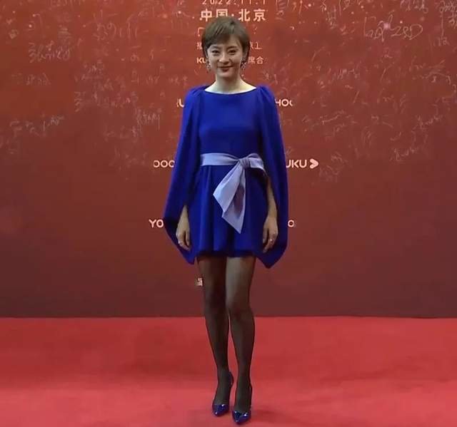 孙俪蓝色套装乍一看是短裙,细看会发现原来是短裤,本来造型设计还算不错,结果腰间蝴蝶结和黑色丝袜一出,多少有点破坏气氛,只能说孙俪的心思可能从来不在红毯上吧。