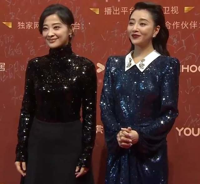 殷桃和梅婷作为嘉宾出场,两个人状态都很不错,就是造型撞元素啦,好一对亮片姐妹装。