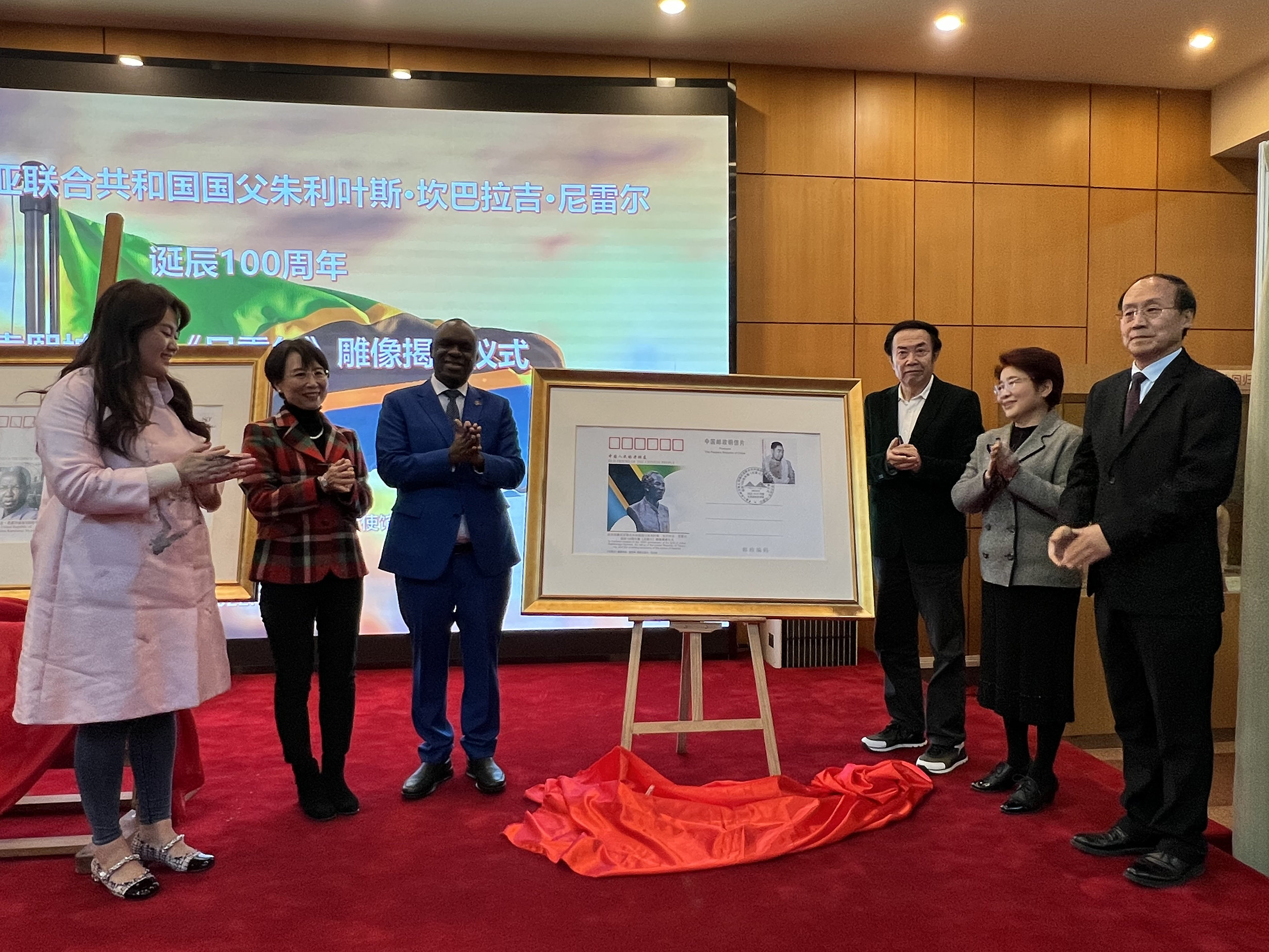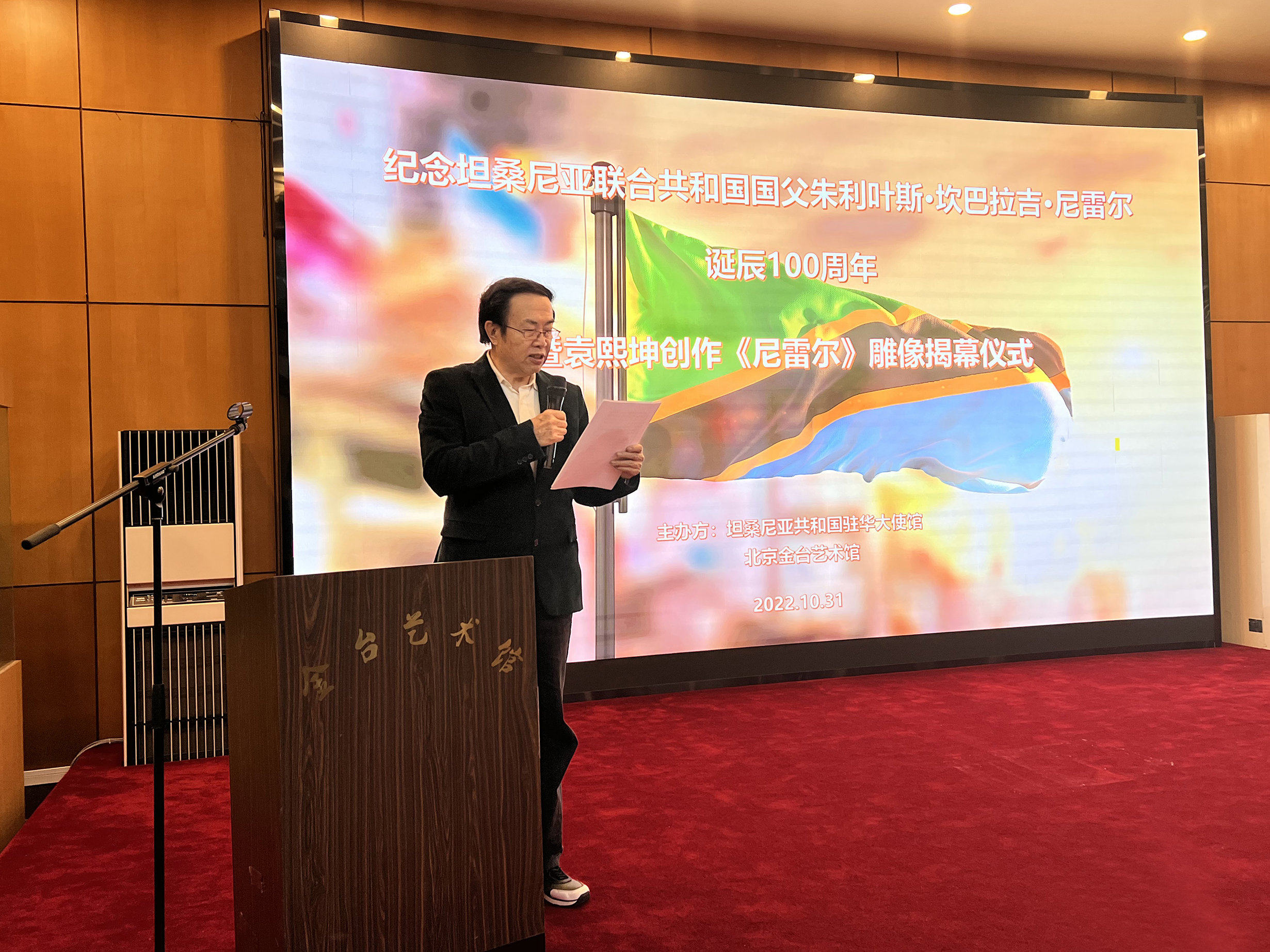 2022年10月31日,坦桑尼亚联合共和国国父尼雷尔诞辰100周年暨袁熙坤创作《尼雷尔》雕像揭幕仪式在北京金台艺术馆举行。坦桑尼亚驻华大使姆贝尔瓦·凯鲁基阁下,原中国驻坦桑尼亚大使王克,原中国政府非洲事务特别代表许镜湖,第十一、十二届全国政协常委、联合国首授环保艺术大师、著名艺术家、北京金台艺术馆馆长袁熙坤,原外交部集邮协会秘书长、金台国际友谊主题邮局副局长马小玲和北京怡苑文化艺术促进会会长、北京金台艺术馆副馆长罗肖出席了活动。