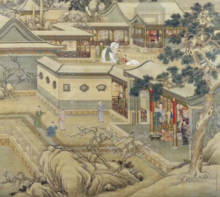 丁观鹏、郎世宁等绘《乾隆帝岁朝行乐图》轴 (局部)故宫博物院藏