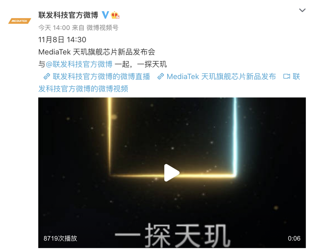 联发科今日宣布将于 11 月 8 日 14:30 举行天玑旗舰芯片新品发布会,天玑 9200 很快就来。