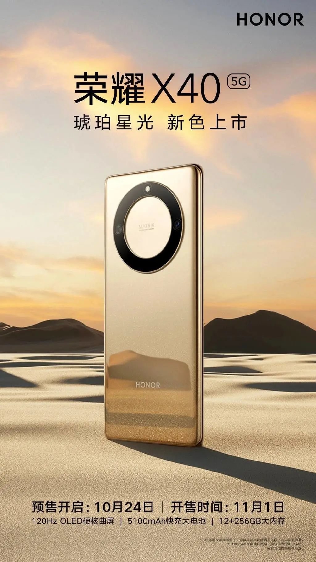 ③ 荣耀 X40 全新琥珀星光配色今日开售