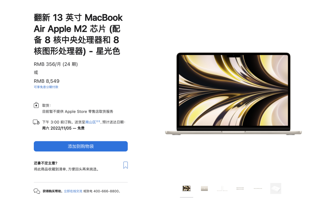 翻新版 13 英寸 MacBook Air (M2 芯片)笔记本已经上架苹果官网,售价 8549 元(8GB + 256GB ),比原价便宜了 950 元。