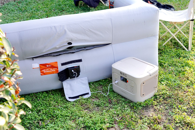 当然,在户外使用时,电小二户外电源800Pro还可以给户外装备供电,比如,可以给我的户外充气沙发,通过电小二给充气电泵供电给它打满气。在户外游玩野餐时,几乎可以满足户外用电的一切需求,媲美市电一样,如果选择在河北游玩,甚至可以给台式净水机供电,解决了用水的需求,户外玩,有水有电,非常完美。