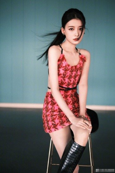 孙怡粉色连衣裙写真 美背细腰身材优越