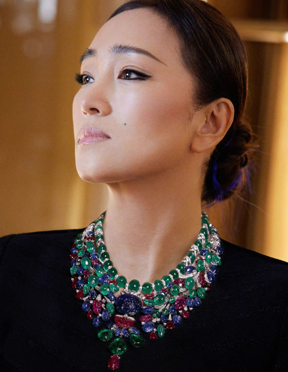 全包眼线与裸色唇妆的组合,让本就自带气场的巩俐霸气十足,这谁看了不得说一声“巩皇”!高级珠宝在她的脖颈好似那精妙的艺术品,二者之间相互衬托。而今年已经56岁的巩俐脸上看不见一丝皱纹,脖颈也紧致十分,似乎岁月并没有为她的容颜带来任何痕迹,反而是巩俐伴随时间向前更有一番韵味。