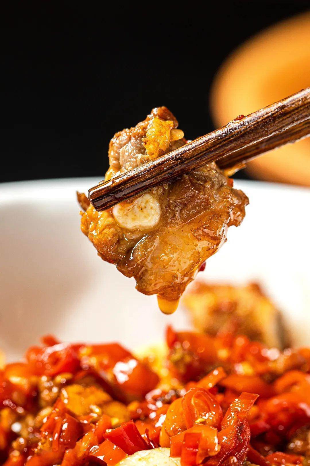 生炒排骨,餐馆里所有菜品均源自于“农家食材”,区别于普通湘菜馆出品。就像生炒排骨,沿用了湘潭“生炒”烹饪方式。这样做出的排骨, 汤汁极少,肉质鲜嫩,最大可能的保留了食材的原汁原味。